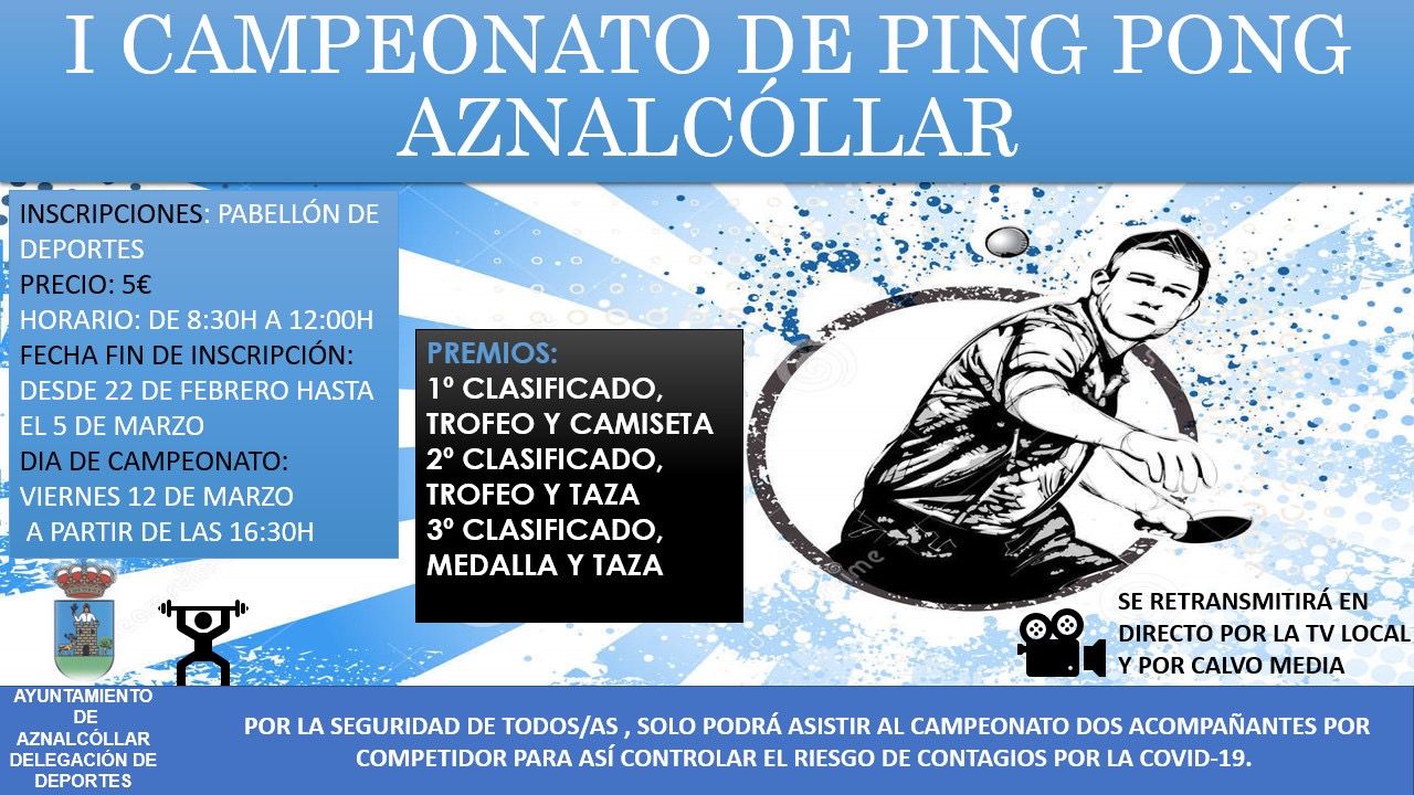 La delegación de deportes del ayuntamiento de Aznalcóllar organiza el ``I CAMPEONATO DE PING PONG´´ en el pabellón de deportes.