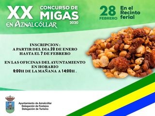INSCRIPCIÓN XX CONCURSO DE MIGAS AZNALCÓLLAR Y DÍA DE ANDALUCÍA 28 DE FEBRERO 2020